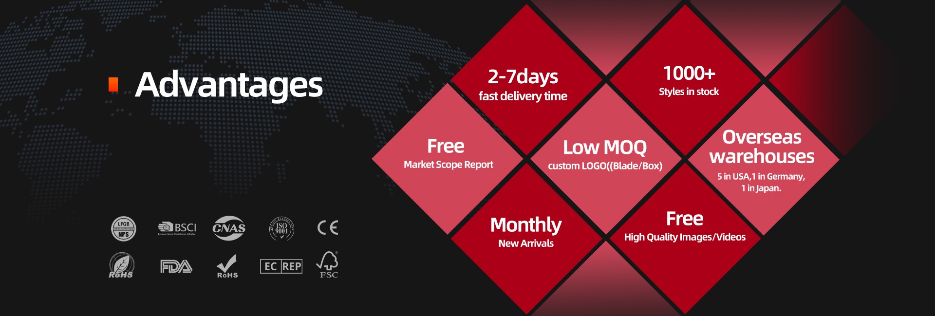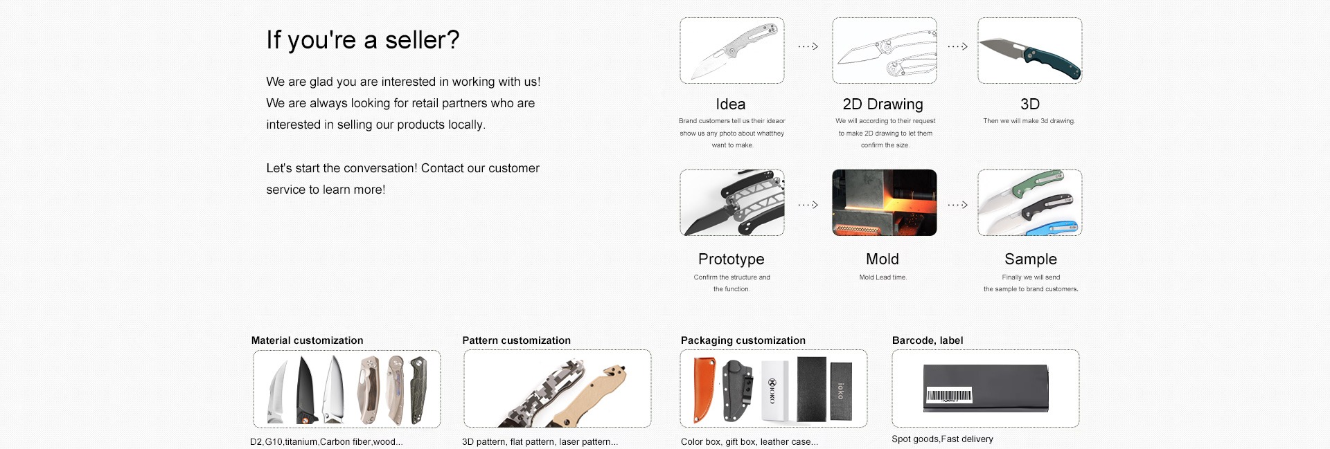 Productos principales:Cuchillos de cocina y tijeras, navajas de bolsillo, cuchillos de exterior, palas de exterior, utensilios de cocina de silicona